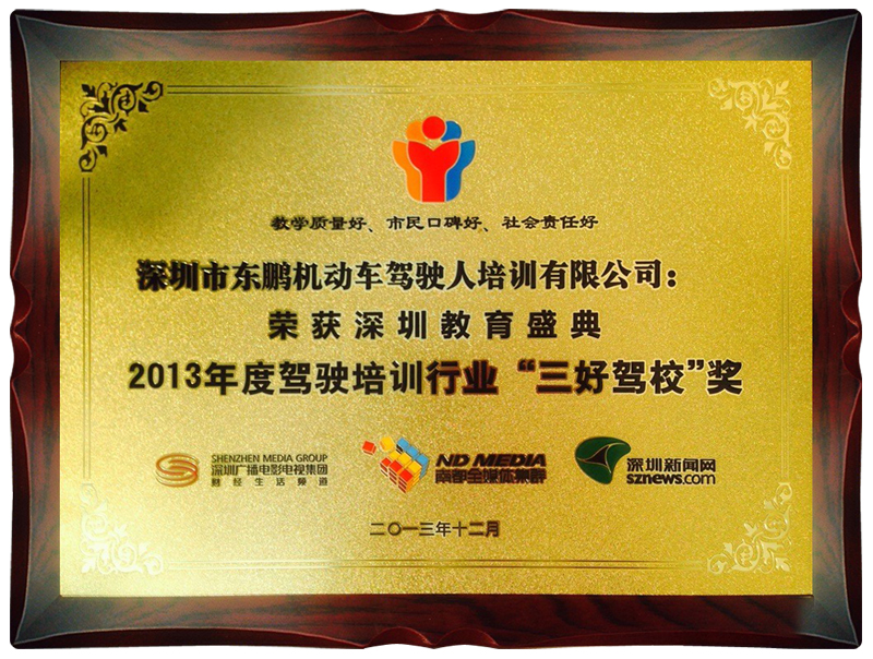 东鹏驾校获得2012年质量AAA级驾校称号证书